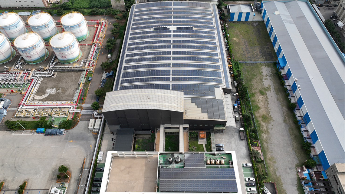 案場名稱: 新賀工業股份有限公司 案場地點: 彰化彰濱 架設樣式: 落地平鋪混和型 模組品牌: 元晶單晶高效能310W 投資方式: 屋頂出租 系統類型: 併聯售電 系統裝置容量: 1287.74kWp 設置面積: 2447坪 預估年發電量: 約1880100度
